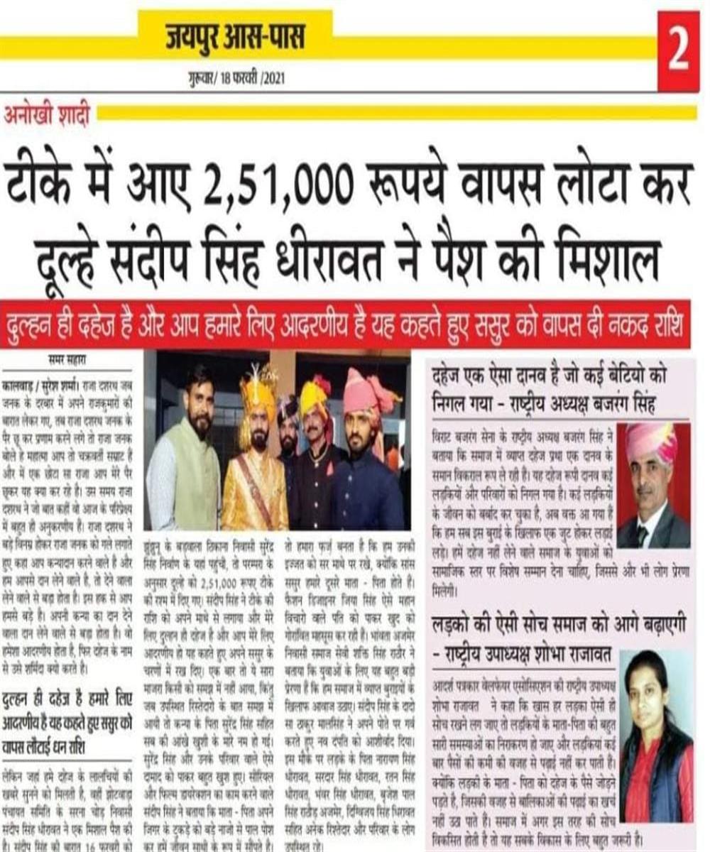 We will help those who will not take dowry in their jobs and other work.