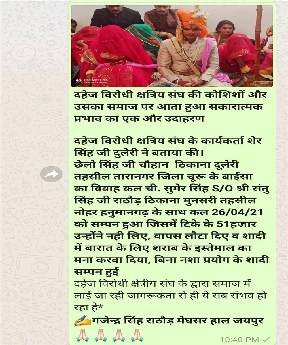 We have done more than Three Thousands marriages without dowry till date !