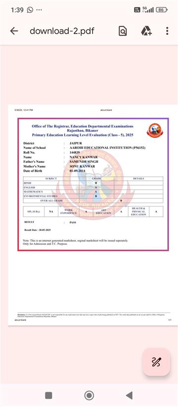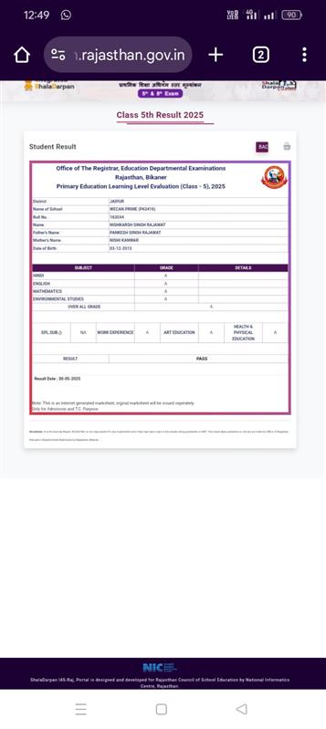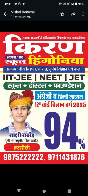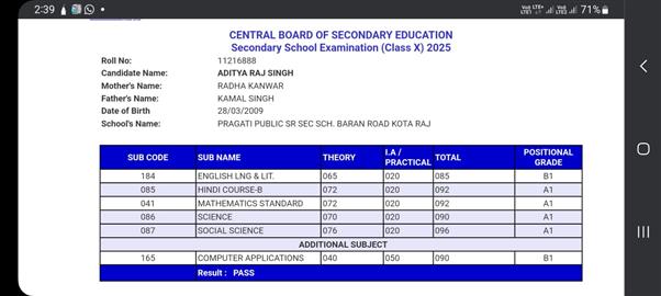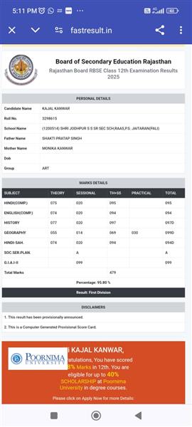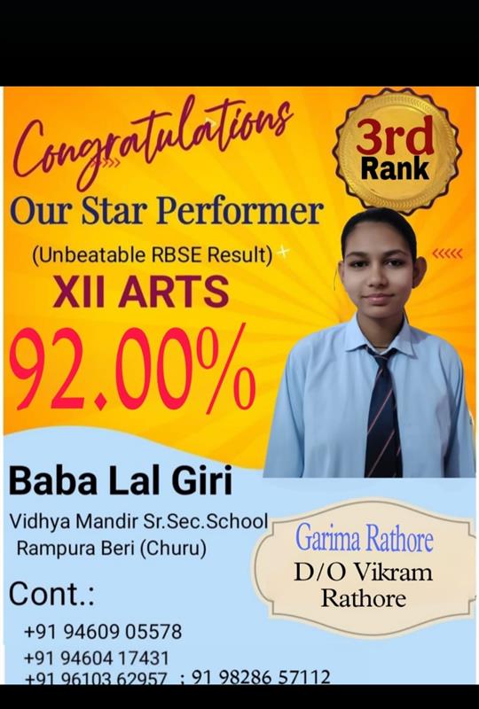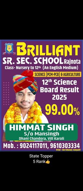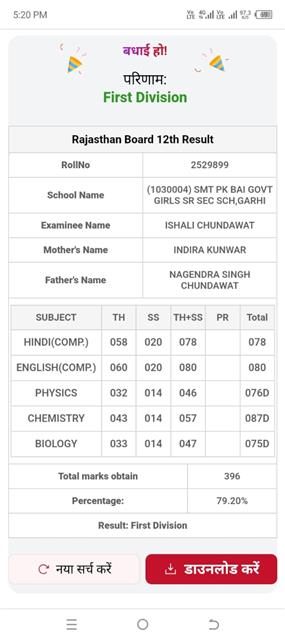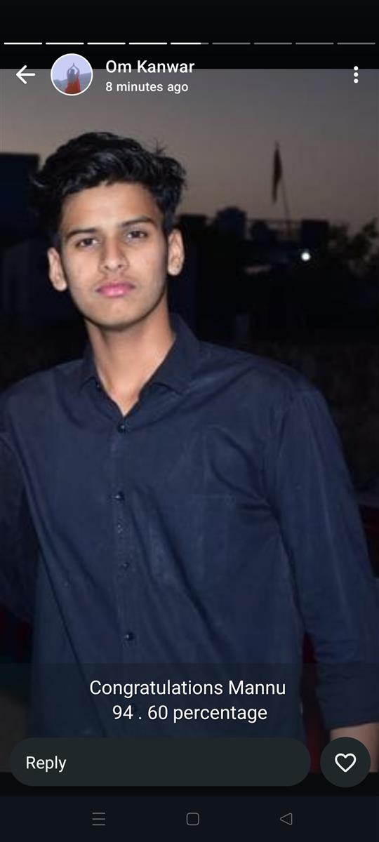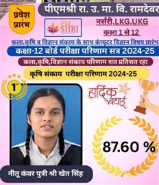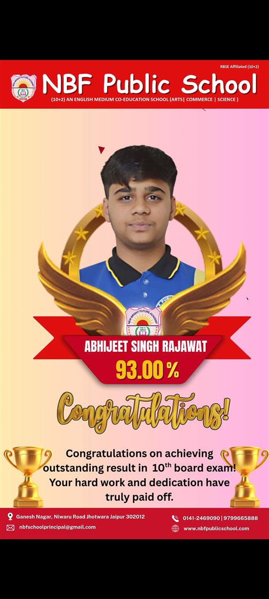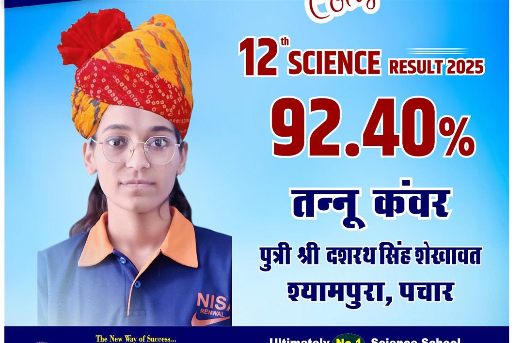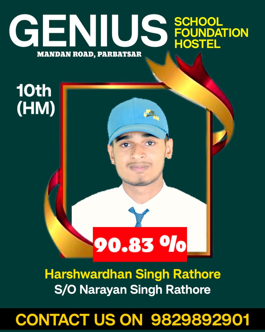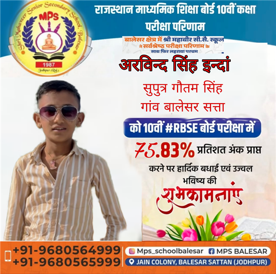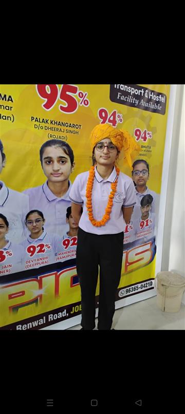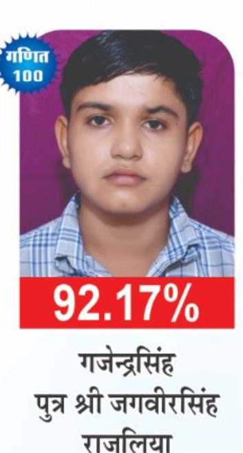 Father Sh : JITENDRA SINGH SHEKHAWAT Mother Smt : PRAKASH KANWAR Address : 22, Kariri House, Ganesh Nagar2nd , Opposite Balaji DharamKanta,Sikar Road ,Harmada, Jaipur- 302013 achieved in class: 10 98 My Goal is NDA