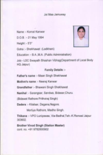 हुकुम आप रिश्ता करने से पूर्व पूरी तरह जांच पड़ताल कर ले दहेज़ विरोधी क्षत्रिय संघ केवेल आपकी सहायता हेतु सिर्फ बायोडेटा उपलब्ध करवा रहा है.